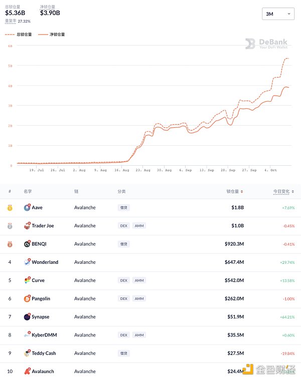 Avalanche鏈上DeFi鎖定資產:39億美元