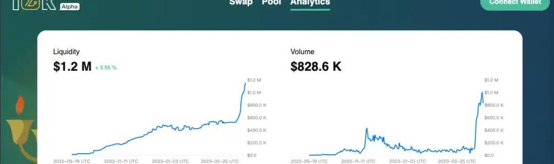 3.4.110KSwap10KSwap是部署在StarkNet上的第一個開源AMM協議,旨在利用rollup的性能為AMM協議的性能,為L2世界帶來更低的費用、更少的摩擦以及更好的流動性。目前10KSwap支持了ETH、USDC、DAI、WBTC、USDT五種代幣間的swap,與傳統swap類似,用戶也可以向10Kswap提供流動性來賺取做市收益。目前,10Kswap的流動性約為120w美金,日交易量約為82.86w美金,仍然處于早期階段。