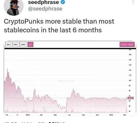其他DeFiDapp,如0x、Aave和GMX也交易量暴增。雖然周末銀行都關門,傳統投資者需要等到周一才能對SVB的消息采取行動,但DeFi7*24小時在線。這突出了開放系統和透明度的必要性。藍籌NFT在混亂的市場中仍然是一項穩定的投資