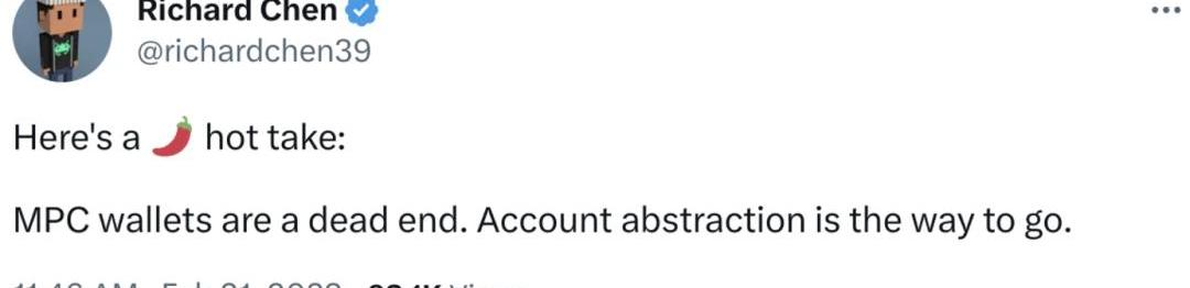 錢包在Web3世界是資產、身份、賬號的統一體,加上其在不同應用之間的一致性和可組合性,其重要程度甚至超過了微信或Google賬號在傳統世界位置。但由于錢包本身的使用門檻,Web3錢包用戶始終無法突破Metamask30M月活地址這個數量級。以Metamask為代表的標準EOA錢包地址將用戶自己管理的私鑰對應的公鑰做哈希映射。這句話本身就解釋了為什么它阻擋了大多數人進入Web3世界——牽扯到太多讓人聽不懂的概念了。可問題在于,這些概念確實無法省掉。要想使用EOA錢包,就必須自己通過助記詞的方式管理私鑰,就必須理解什么是公鑰,什么是數字簽名,而且助記詞一旦丟失或泄漏,資產和身份將永久丟失。這些門檻是如此之高,以至于用戶必須有極強的動力才愿意進來。這也是為什么目前Web3應用的主流用戶是投機和擼空投的用戶,根本沒有常規意義下的正常用戶。這反過來將Web3應用的生態引向了錯誤的方向,沒有人真正關心你的項目是否有長期價值。什么時候發幣,怎么加白成為用戶的主要訴求。我們當然不只有EOA錢包,中心化托管、MPC和賬戶抽象錢包都在嘗試提出兼顧易用性與安全性的錢包解決方案。中心化托管由于單點風險和資管安全問題不被主流應用所接受。那么多方共管的MPC方案和集大成的抽象賬戶錢包方案是不是可以徹底解決安全與便捷的矛盾呢?