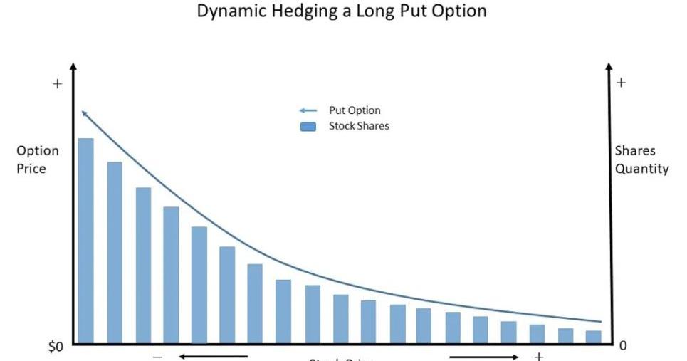 只要歷史波動率低于他賣出期權時的隱含波動率,或者歷史波動率高于他買入期權時的隱含波動率,那他就會盈利。做到這一點就是通過Delta對沖策略來對沖標的資產價格變動的影響。期權的Delta是指期權價格相對于標的資產價格變化的變化。重點是買入或賣空標的資產,其數量與期權的Delta值相反,以對沖價格的變化。這樣一來,期權交易商仍然會存在受期權波動率影響的主要風險。然而,當標的資產價格變化時,期權的Delta值也會發生變化。這種風險被稱為gamma風險,這是期權價格相對于資產價格的二階導數。因此,為了解釋gamma風險,期權交易者會進行動態對沖,尤其是對沖基金和做市商。也就是說,每當標的資產價格發生重大變化時,它們就會持續重新對沖其Delta風險。一段時間后,它們調整與標的資產的對沖以匹配新的Delta。這就導致了這樣一種情況:當標的資產價格上漲或下跌時,期權交易者必須買入更多的標的資產以保持Delta中性。