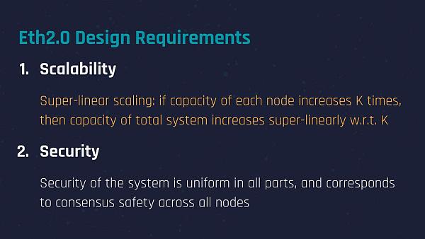 在這一段,作者指出,以太坊 2.0 的兩大設計目標是可擴展性和安全性。