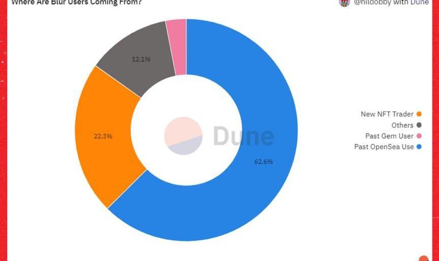 如前文所述,對NFT交易平臺而言,豐富的選擇和友好的體驗是立足行業并攫取更多市場份額的基礎。而Blur的速度優勢、獨特功能更是其重要的護城河。也是因為這些,Blur早期用戶中有65%都來自OpenSea和Gem。
