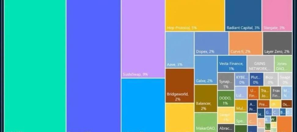 空投給DAO的1.13億$ARB分配如下:GMX能獲得22%代幣,后續可能分發給GMX交易用戶。Treasure_DAO能獲得19%的代幣,后續可能分發給各游戲用戶及核心NFT持有者。SushiSwap能獲得9%,應當也是給交易用戶了。