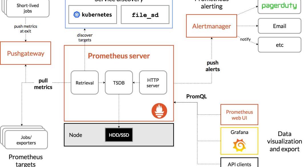 監控工具一般用Prometheus這工具可以監控的內容比較多,其生態如圖(https://prometheus.io/assets/architecture.png)。在測試區塊鏈應用的實踐中,一般是先使用docker-compose部署多個區塊鏈節點模擬正式進行測試的環境,因為正式的測試環境一般硬件配置較高,如果不是自建機房,使用云服務廠商的機器,費用昂貴,這樣做可以節約成本。docker-compose中可以限制容器使用的資源,如內存和CPU算力,甚至綁定CPU核心,對這些資源的監控可以使用cadvisor。為了驗證CPU限制是否準確,可以用stress-ng壓滿核心,看統計結果是否與限制值一致。
