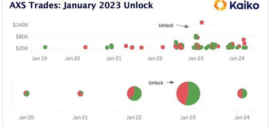 交易層面的數據顯示出更有趣的見解去年$AXS解鎖釋放了8%的上限供應量,其中約四分之一流向了早期投資者導致在解鎖當天的拋售壓力,在幾天后平衡