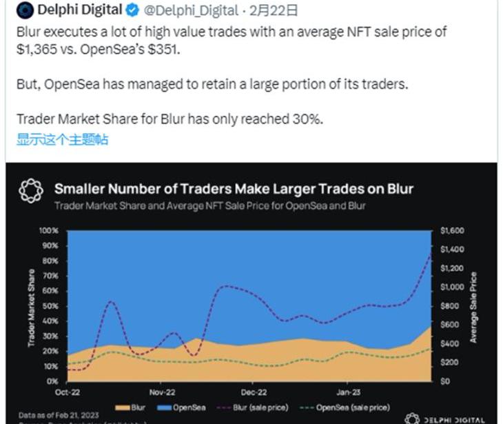 https://twitter.com/blur_io/status/1628158959940149248Blur是為交易員打造的,而不是創作者或零售者。這絕對沒有錯,這是一個很大的垂直方向。但我們應該在對其未來的預期中考慮到這一點我認為Blur會成為未來大多數NFT交易的市場嗎?不。