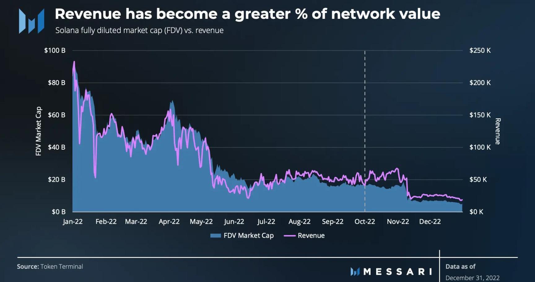 在第四季度,持續的熊市加上FTX的破產產生了重大的負面影響。FTX是Solana的重要投資者,是SolanaDeFi不可或缺的一部分,尤其是在開發DEXSerum方面。結果,Solana成為受影響最大的網絡之一,其市值下降了70%,從121億美元暴跌至36億美元。盡管市場狀況使得用戶活動產生了下行壓力,但由于網絡性能的提高,平均每日交易量和每秒交易量(TPS)仍在增加。盡管總交易量有所增加,但平均交易費用繼續下降。在連續第四個季度下降后,平均交易費用同比下降90.3%。第四季度收入也繼續下降。同樣,季度總收入同比下降83.3%。盡管如此,收入的下降程度小于交易費用,這表明收入受到交易活動增長的部分支撐。