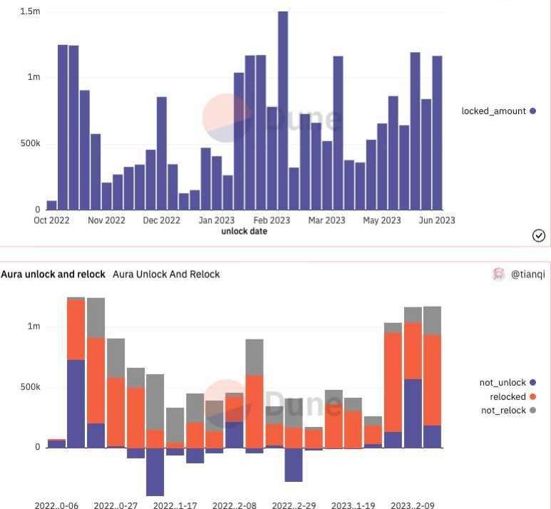 Alchemixfi已將其ALCX的流動性轉移至Balancer,并將通過其TOKE持有的資金購入AURA,未來的Alchemix資產可能會被整合,并且關于提供投票激勵的討論已經在進行中。談及Arbitrum,一旦可以進行跨鏈,可能會看到很多Arbitrum項目進入其Aura生態。比如,當MAGIC、JONES、GMX、GNS、DOPEX、VSTA等都開始與LSD一起激勵vlAURA投票時會發生什么?與Aura的合作還在繼續,后續新的合作伙伴包括Ribbon、Liquity、Pendle、Gearbox、Euler等。最近的解鎖的vlAURA的70-80%都進行了再次鎖定,幾乎沒有賣出。像Gnosis、Badger和Messi這樣的大戶都是長期持有的,他們每幾周都會不斷累積鎖定AURA。