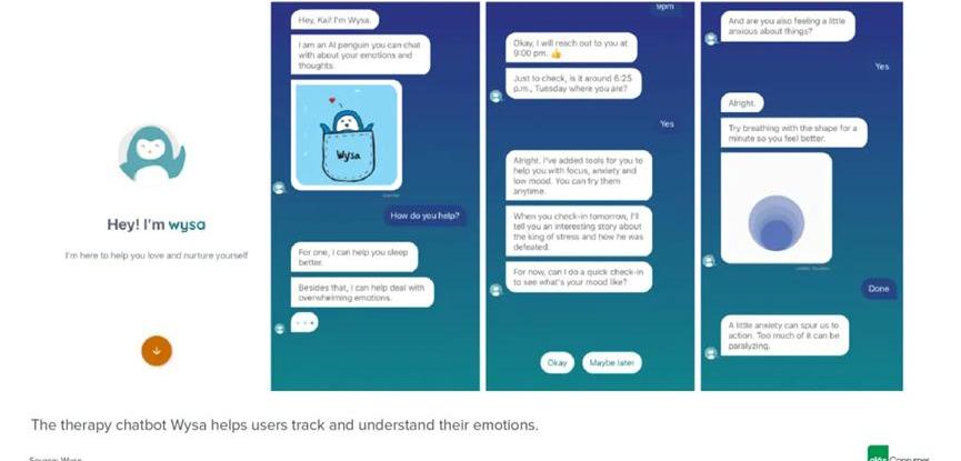 我們還希望看到更多的專業,甚至臨床應用人工智能聊天機器人的案例。人工智能治療師、營養學家、教練和導師將使全球數百萬消費者的個人和職業發展成本更低、更方便。這是一個全天候的數字支持系統,用戶只需打開一個應用程序就可以提問或開始對話。早期研究發現,聊天機器人可以有效治療心理健康。Woebot和Wysa等產品已經證明了臨床驗證的結果,并獲得了FDA的指定,用于治療產后抑郁癥、慢性疼痛和焦慮等疾病。目前,超過25%的成年人患有可診斷的精神健康問題,我們正在經歷全國范圍內的治療師短缺,聊天機器人可能是非急性病例的可行解決方案。