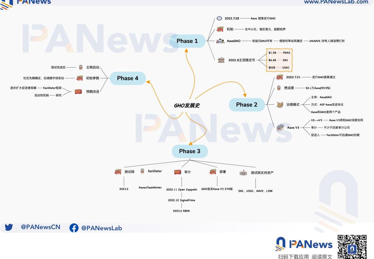 XRP/HKD-3.75%2月9日,由Aave發行的去中心化美元穩定幣$GHO正式在以太坊Goerli測試網上線,以供開發人員和社區用戶訪問其界面,以檢測其工作流程是否存在潛在的問題,目前測試網支持DAI、USDC、AAVE和LINK四種資產。以及增加了新的促進者以支持FlashMinting模式,可以起到和閃電貸相同的作用,意在提高交易效率。本次發布ABDK所出具的第四份審計報告,結合之前出具的OpenZepplin和SigmaPrime的報告,主網上線最后的審計工作接近完成。并且,Aave為配合GHO的測試,還同步發布與測試網配套的NFT,可在此處領取。關于GHO,PANews在之前曾經發文進行解讀,具體細節可參考以下兩篇文章,本文重在解讀更新內容和階段性進展。一步之遙:測試網功能完備
