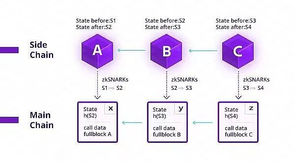 與Plasma不同的是,它把原始的交易記錄也保存在主鏈上,如果驗證節點提交的狀態變更結果與交易記錄不符,那么任何人都可以在“挑戰期”內提交“欺詐證明”,使得錯誤的狀態變更結果被正確的覆蓋并獲得驗證節點的押金。