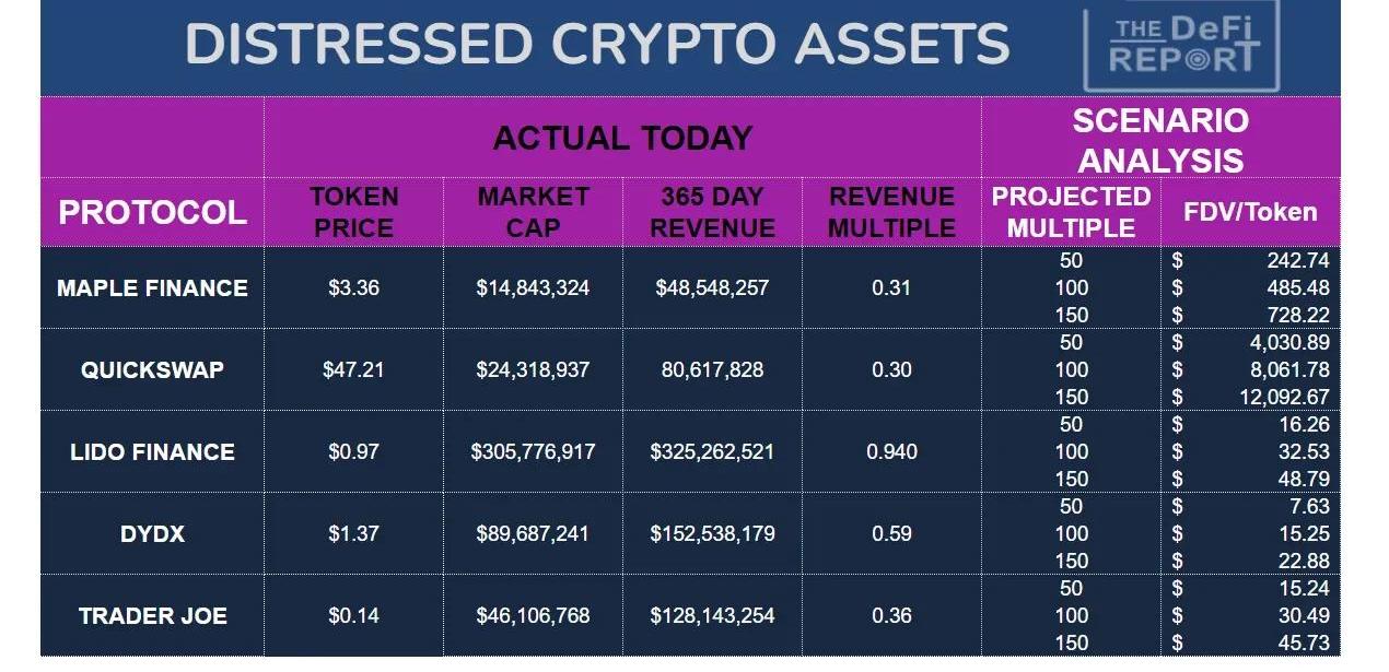 現在是時候挽起袖子,在嘈雜的海洋中尋找信號。第1步:現金流量我們的重點是有現金流的項目。我們不關心很酷的想法或一些用新功能調整現有想法的新項目。我們只想看到用戶和現金流,尤其是在熊市。這就是信號。新功能和華而不實的想法在這個領域大多是噪音。第2步:市場價值接下來,我們要看一下當前的市場價值。首先可以確定一年內現金流超過其當前市場價值的項目。然后我們將這些項目作為初始篩選過程。以下是一些可以通過第1階段的項目的簡單示例: