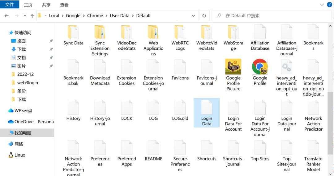 我的私鑰加密保存在Chrome的小狐貍中,黑客是如何獲取到我的私鑰的?這得從Chrome這個瀏覽器說起:你敢想象嗎?這個占據著全球66%市場份額的Chrome瀏覽器居然存在一個巨大的安全漏洞!這個漏洞是什么呢?如果你在下圖路徑打開你的Chrome瀏覽器的Default文件夾,你會發現一個叫LoginData的文件,這個文件存儲著你在Chrome上保存的每一個密碼,但如果你想直接打開去讀它的話你會發現它是不可讀的,顯示的是一堆亂碼,因為這個文件被AES算法加密過,暴力破解需要破到天荒地老,那么其實你在Chrome上保存的密碼都是十分安全的,但問題出在哪?