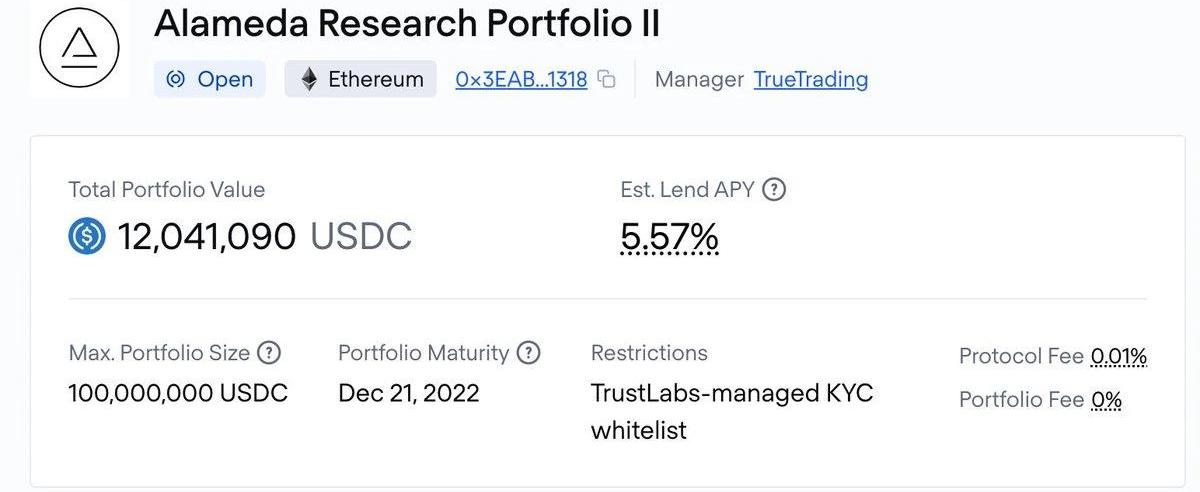 下面是由OrthoCredit和M11Credit管理的Maplepools,盡管Alameda在過去有超過1億美元的貸款,但沒有未償還貸款。