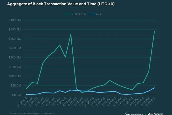 資料來源:FootprintAnalytics這些交易者有兩個不同的交易高峰時間,在上午8點至上午9點和每天結束時。