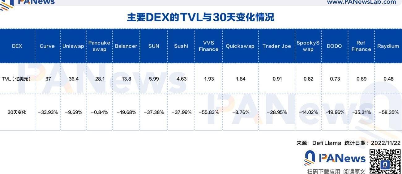 XRP/HKD-2.79%曾估值320億美元的頭部加密交易所FTX因為挪用資金走向破產,對中心化交易所的不信任引發新一輪提幣運動。更多的資金從中心化交易所轉移到非托管錢包,鏈上的現貨和永續合約交易所中的交易量是否會上升呢,PANews在分析后發現以下情況。短期之內,DEX的交易量整體上并沒有因為大家對中心化交易所的不信任而增加。去中心化現貨交易所的TVL在過去一個月均有下降,以太坊上的Uniswap、Polygon上的Quickswap和BNB鏈上的Pancakeswap的流動性下降幅度在10%以內,Cronos上的VVSFinance和Solana上的Raydium流動性降幅在50%以上。去中心化現貨交易所紛紛降低交易手續費比例以搶占市場,目前交易量最高的交易對,手續費比例僅0.05%或0.01%。這一競爭方式也可能在未來蔓延到永續合約交易中。頭部去中心化永續合約交易所dYdX和GMX的TVL在過去一個月保持穩定,dYdX的TVL是穩定幣,價格不受市場波動影響,GMX則吸引來了新的流動性。DeFi項目的價值捕獲能力可能對后續發展產生積極作用,由于GMX會將手續費收益發放給用戶,更高的交易量導致更高的APR,吸引來更多的流動性,可能形成正反饋,促進未來更高的交易量。去中心化現貨交易所