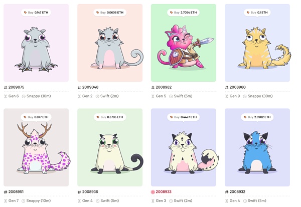 雖然測試版本前一個月在 ETH Waterloo 首次亮相,但這個日期標志著 CryptoKitties 的正式發布。這些愚蠢的數字貓在當年年底和第二年引起了巨大的興趣,而一個叫做“Genesis”的藏品經歷了瘋狂的競標,最終售價為 247 ETH,當時約為 11.8萬美元。(如果你想知道,按照本周的價格,這是89.4 萬美元。)