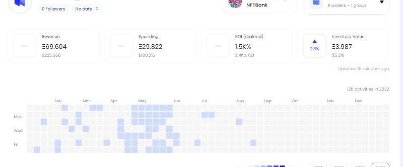 想知道你的錢包賬戶到底盈利多少或到底虧損多少?NFTbank幫助你輕松查看這些信息。它是一個管理你NFT投資組合的工具,你能夠在上面查看你的所有NFT以及它們的總價值,并且還可以跟蹤那些高盈利的錢包。參考鏈接