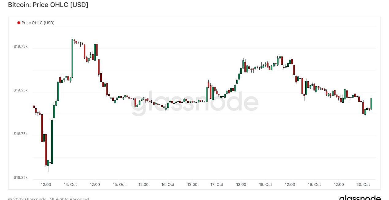 3)現貨行情BTC在19000附近已經橫盤9周,已接近震蕩期的末端。歷史上市場達到如此低的時期是非常罕見的,幾乎所有先例都發生在高度波動走勢之前。2018年BTC在最終崩潰前曾多次測試6000美元水平。