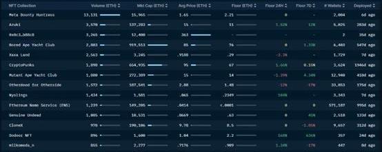 當前鏈上轉賬費用約為$1.25,Uniswap交易費用約為$4.26,Opensea的交易費用約為$1.66,整體出現觸底反彈,連續幾周穩步有所增長。5.NFT市場數據變化