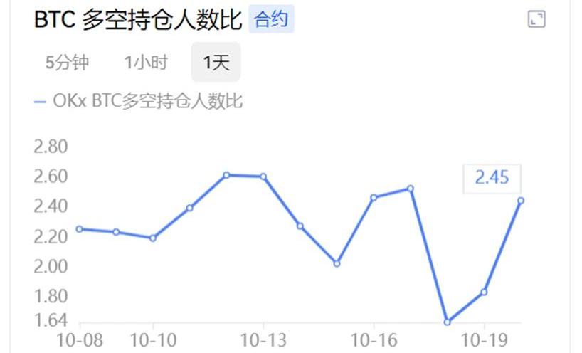期貨多空比:2.5。散戶做多,市場下跌概率較大。多空比數據波動大,參考意義有所削弱。
