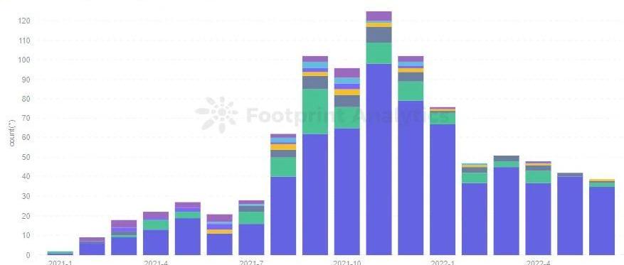 FootprintAnalytics-MonthlyNumberofNewProjects即便如此3A游戲仍值得期待,這是因為在GameFi領域中Play-to-earn一直是比較受爭議的,但優質的游戲內容和品質一直是玩家們所希望看到的。所以以此為出發點的這些3A游戲只要有一些利好消息、活動等都能在一定程度上增加玩家對其的信心。