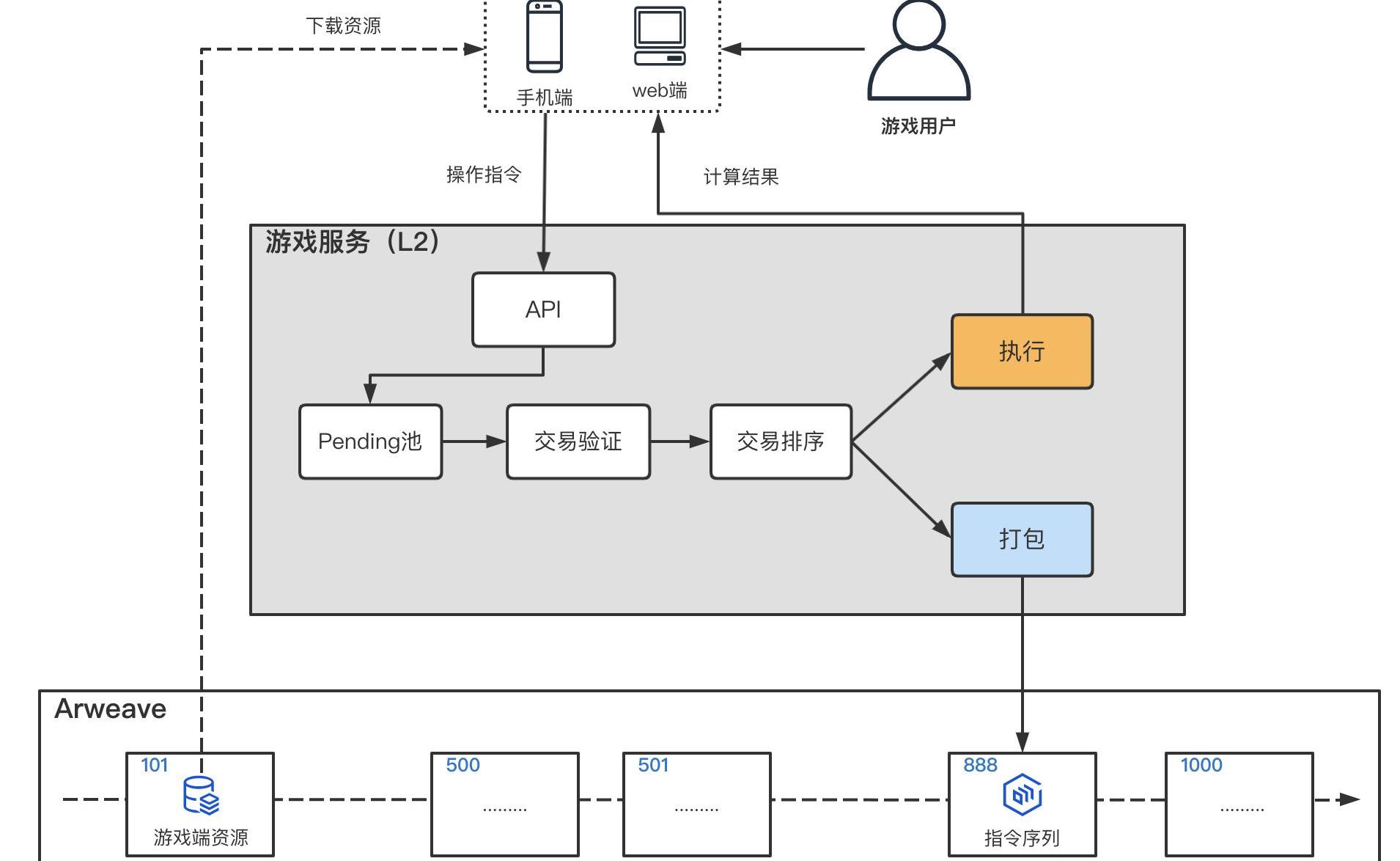 可以說NFT和Play2Earn模式是引爆上一波GameFi牛市的導火索。通過區塊鏈和NFT可以賦予鏈游顛覆傳統游戲的特性:擁有權:通過鏈上NFT,玩家真正“擁有”他們的裝備,而不是屬于游戲運營商。開放的市場:玩家可以在市場中自由交易他們的游戲資產,這也誕生了玩家瘋狂追逐的Play2Earn模式。可組合性:玩家的裝備、物品可以穿越多個游戲進行使用,想象一下你在魔獸世界獲得的傳奇裝備可以在CSGO中使用的場景。Loot給我們做了很好的示范。故事聽起來很酷,但真實的情況并非如此:雖然游戲資產和NFT在玩家手中,但數值產出和保存卻在中心化的游戲服務器上,項目方可以隨意修改屬性,甚至關閉服務器,玩家手中的NFT實際上只是一紙空文。造成這種情況的技術原因有幾個:高昂的存儲成本:存儲是區塊鏈上的稀缺資源,以太坊為主的所有公鏈,實際上都屬于計算層,本質還是賬本,設計之初就不善于做大量存儲工作,項目方不可能將動輒數GB的游戲數據存儲到鏈上。高昂的計算成本:在鏈上進行計算要消耗gas費,玩家和項目方都無法承擔游戲服務中高昂的計算費用。無法忍受的響應時間:區塊鏈從發起交易到打包出塊要經歷漫長的等待過程,快則幾秒鐘,慢則幾分鐘。這對于游戲這種需要低延時、高頻交互的應用很不友好。所以現在鏈游的技術架構以“資產上鏈,鏈下執行”為主,這種模式僅完成了資產去中心化,但代幣的產生是在鏈下完成,通常在玩家交易前需要提取“提取”操作把游戲內的資產轉移到鏈上。游戲計算和交互大部分也在鏈下的游戲服務器內進行,這種模式的鏈游去中心化程度還很低。很多L2、游戲應用鏈著手解決計算成本問題,如Avax的subnet、專為游戲服務的IMX等,但都沒有從根本上解決存儲成本和響應時間問題。也有一些項目進行了純鏈上游戲的探索,如Lssac(一款基于starknet的純鏈上游戲),但是lssac是輕量級數值游戲,可玩性不高,對于高頻交互、動輒10GB資源的3A游戲采用這種方式是不行的。區塊鏈底層基礎設施的瓶頸,造成了現有鏈游的技術困局,人們被“困在”傳統區塊鏈的套子中。如何才能破局呢?不妨跳出傳統區塊鏈,嘗試一個全新的視角—用“非典型”區塊鏈項目Arweave解決鏈游的技術困局!二、Arweave與SCP存儲共識范式