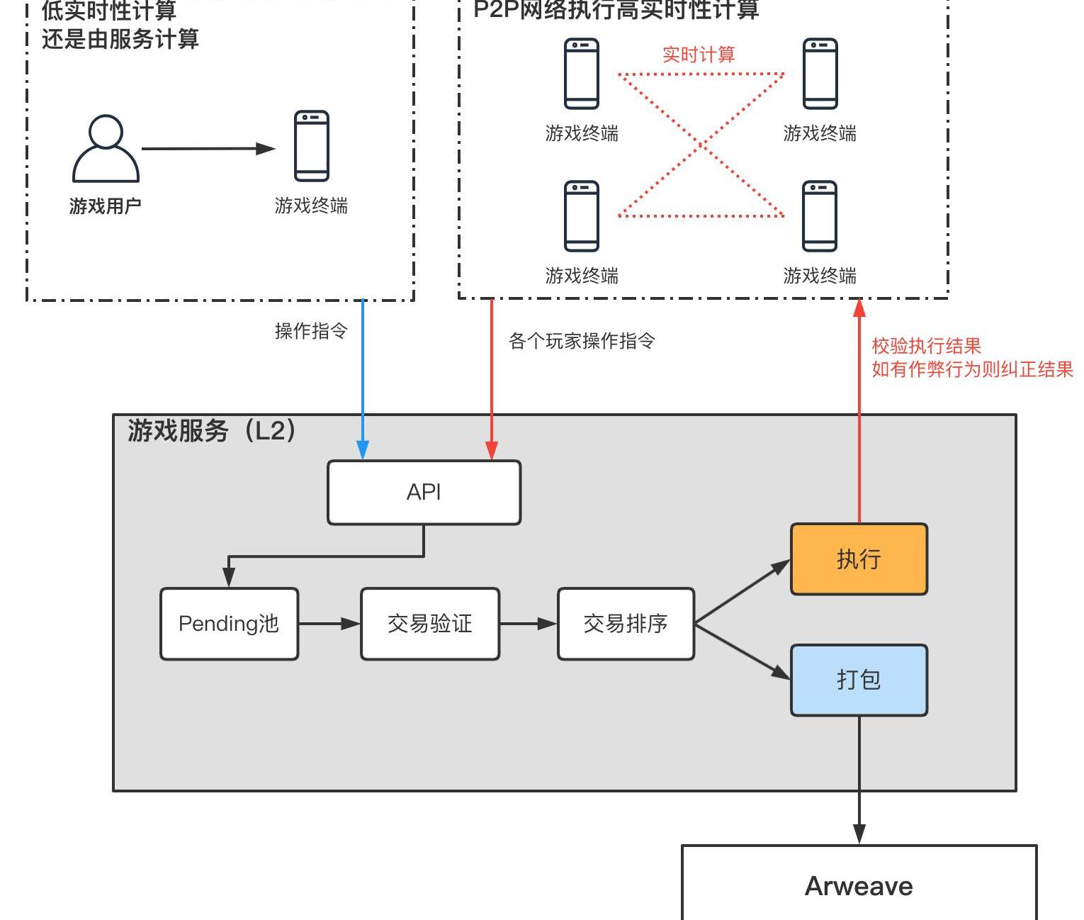 對于實時性要求高的游戲,例如MOBA游戲、ACT游戲、FPS游戲等類型的游戲,可以把高實時性需求拆分到上層執行并快速返回結果,同時將操作序列上傳游戲服務器進行驗證,最終結果以游戲服務為準,操作序列由服務器進行上鏈。