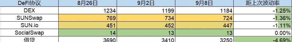 本周各鏈占比波動較小,BSC鏈出現小幅增長,除極個別老牌藍籌協議外,多數協議已經長期走下坡路,后期市場出現新增長時,可能也會更多集中于具備一定話題或創新性的新協議。各鏈協議鎖倉量情況