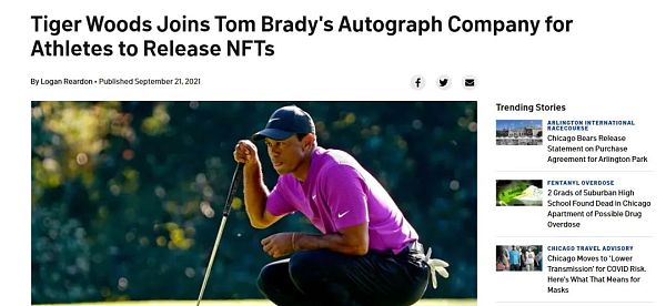 美國全國廣播公司芝加哥新聞頻道通過Autograph頻道報道了泰格·伍茲即將推出的NFT系列。