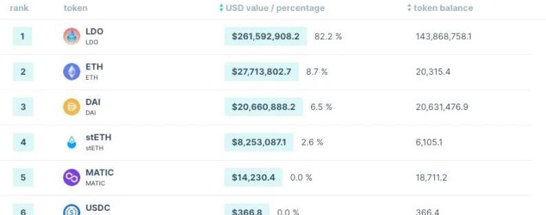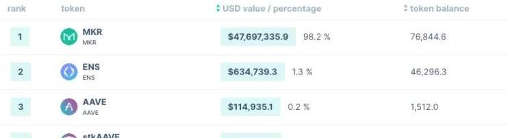 Lido國庫大部分資金都是治理代幣LDO,作為流動性質押衍生品提供商,他們也持有相當多的ETH。同時Lido資產更加多樣化,DAI是第三大持有資產。MakerDAO