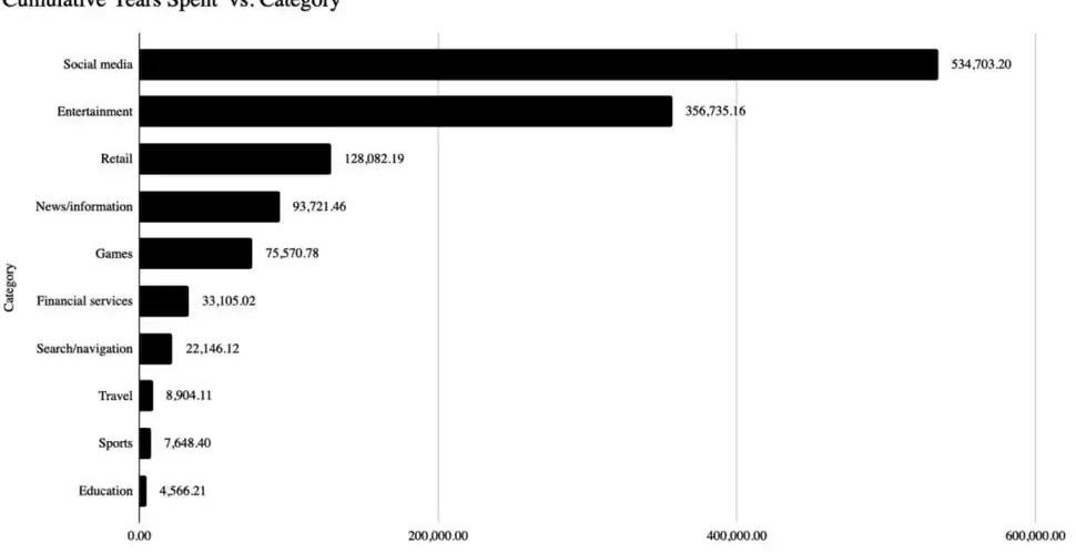 上一次冰河世紀也只過去了11000年在我看來,數字資產的用戶增長曲線將遵循一個非常類似于印度在數字消費上的模式。上圖展示了印度網民在某一年中分別在各類別應用程序中所花費的時間。由于社交媒體類和娛樂類應用都屬于被動型應用,它們的用戶也最多。大致來看,這種模式基本符合馬斯洛的需求層次理論,只不過此處的基本需求是消耗注意力,然后網上是金融服務,還有一部分人選擇了接受教育或學習技能。我利用上述數據繪制了下圖版本的馬斯洛需求層次圖。