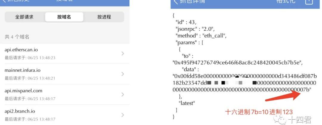 首先咱們通過對照實驗做手機抓包,發現整體小狐貍會做的事情很多拉取地址余額,交易,最新塊內容,指定地址合約字節碼等等