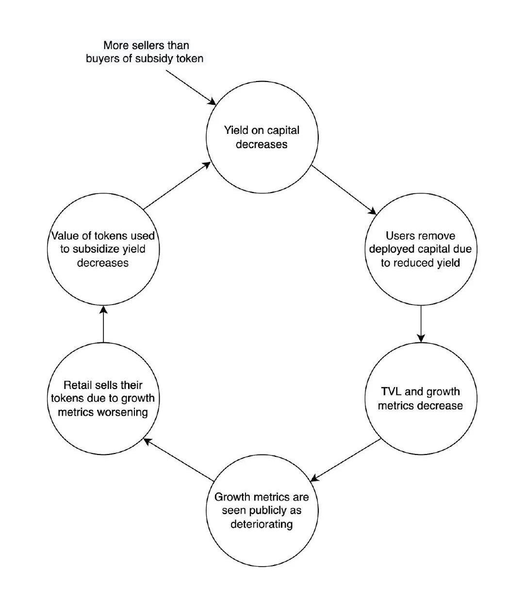 這并不是說你的區塊鏈和生態系統已經消亡,而是說大量的大型資本和散戶正在轉向更綠色的牧場。剩下的是那些從你的區塊鏈生態系統中發現了真正效用的用戶,他們覺得被提供的收益水平仍然足夠,或者已經成為社區成員。代幣也從未真正降到零,即使在極端惡性通貨膨脹的情況下,因此補貼仍然有一定的價值來支持生態系統。但究竟是什么引發了賣家多于買家的轉變呢?通常情況下,它是一個新的閃亮的區塊鏈,提供更好的收益率,更低的交易費用,更快的交易速度,和/或更好的整體敘事。這個區塊鏈可能會遇到與你的區塊鏈相同的問題,但這沒有關系,事實仍然是它們比你的區塊鏈更快、更便宜,它們會讓用戶知道的。因此,旋轉循環繼續進行。結論和關鍵要點
