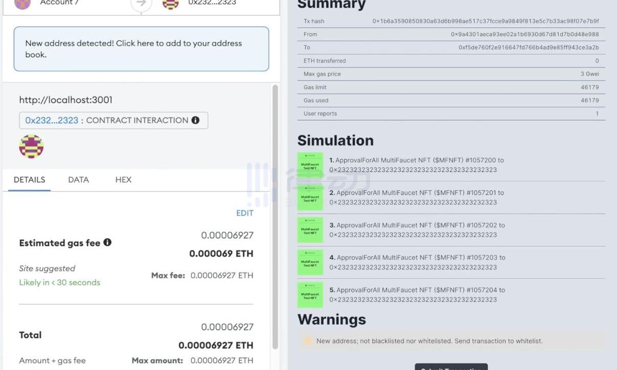 Safenode的另一層保護是阻止用戶與黑名單地址進行交易。該機制與Worldcoin的WorldID用戶報告結合,用戶在遇到高風險合約地址時,可以通過「ReportAddress」功能舉報,如果一個合約地址有上百個舉報時,那么就極有可能是騙局。Safenode的盈利模式類似于SSL證書產業,通過審計合約的安全性和公平索賠,將它們添加到應用的受信任合約列表中。此外,Safenode還可以檢測發送到合約的Token是否可以追回,如果無法追回Safenode便不會執行交易。此黑名單還可用于阻止與已知惡意用戶列表內的地址進行交互。