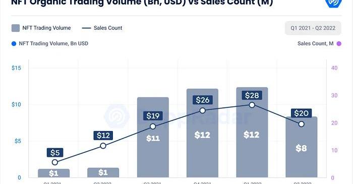 讓我們先來看一組數據:6月,與區塊鏈DApp交互的每日唯一活躍錢包數量為178萬,自2021年9月以來首次未能超過200萬。從整個第二季度來看,平均每月連接到區塊鏈DApp上的UAW為211萬,比上一季度下降了11%,但仍比2021年第二季度高出了62%。此外,雖然以太坊上的交易量比上一季度下降了40%,但同期銷售額卻增長了2%,這說明在過去的三個月中對數字資產的需求有所增加。與此同時,SolanaNFT交易數量與第一季度相比翻了一番,且同期交易量增加了23%。另外,藍籌NFT收藏品開始越來越多地被人們視為比加密貨幣本身更安全的資產類別。最后我們看到,盡管游戲代幣價格還在下跌,但區塊鏈游戲仍然吸引了大量的風險投資,玩家群體穩固上升。因此,盡管加密市場仍呈現出下跌趨勢,但以上這些跡象無不透露著積極的信號,從大方向上來看整個加密行業還是向好的,大可不必現被一時的悲觀氛圍所影響,保持樂觀、充滿希望是渡過眼前難關最好的辦法。2、盡管銷量下滑,對NFT的需求仍在上升