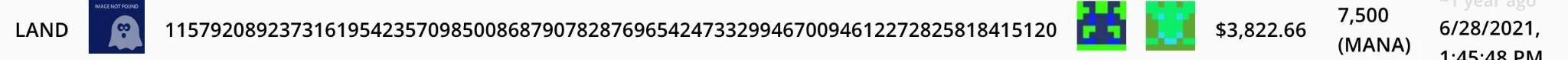 ScreenshotSource-nonfungible她還在Sandbox中增加一塊LAND。當時,搜索“沙盒”這個詞,很難讓人聯想到它能在短短幾個月內就因其token的價格暴漲3842%,而占據新聞頭條元宇宙的稱號。6月28日,共售出46個NFT,帶來43,500美元的收入,均價為945美元。這比當天的中位數價格高出幾百,但仍然足夠準確,可以做一般分析。