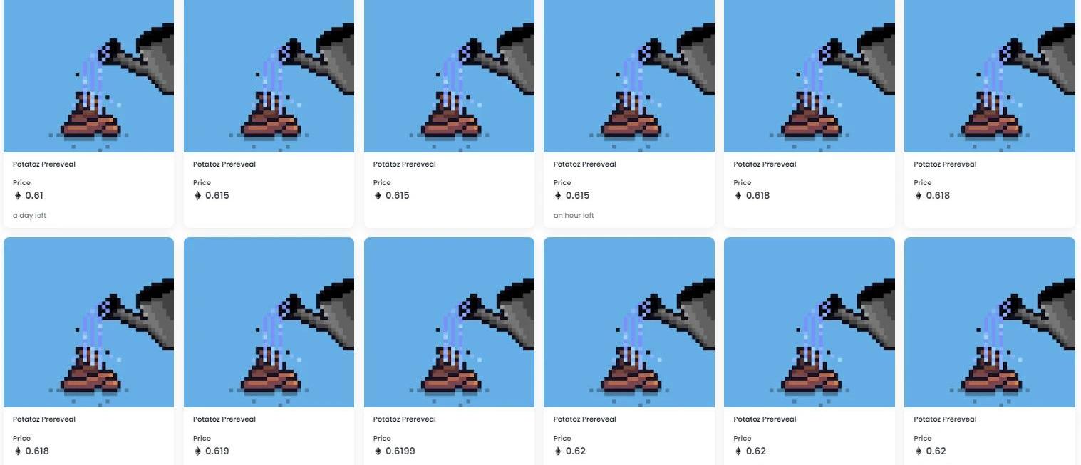 短期內NFT市場好像走入了一個新的環境,土狗NFT的崩盤,老牌二線NFT失去流動性,一周內交易筆數在個位數,而新出現的NFT項目越來越多,并且逐漸呈現出專業性、大團隊、傳統企業跨界和freemint的趨勢,可能會在一段時間后為整個NFT市場注入新的增長點;短期值得關注的項目是ThePotatoz,是MEMELend的系列的前傳,借用了馬鈴薯的起源,象征著MEMELend生態的逐漸出現了萌芽,將會迎來生態上的第一波居民,freemint生成,一天內交易量超2000ETH,地板價達到了0.61ETH,并且持有用戶相對分散。