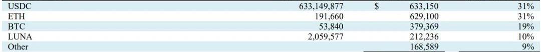 截止一季度,Voyager在加密貨幣方面的應收資產如下: