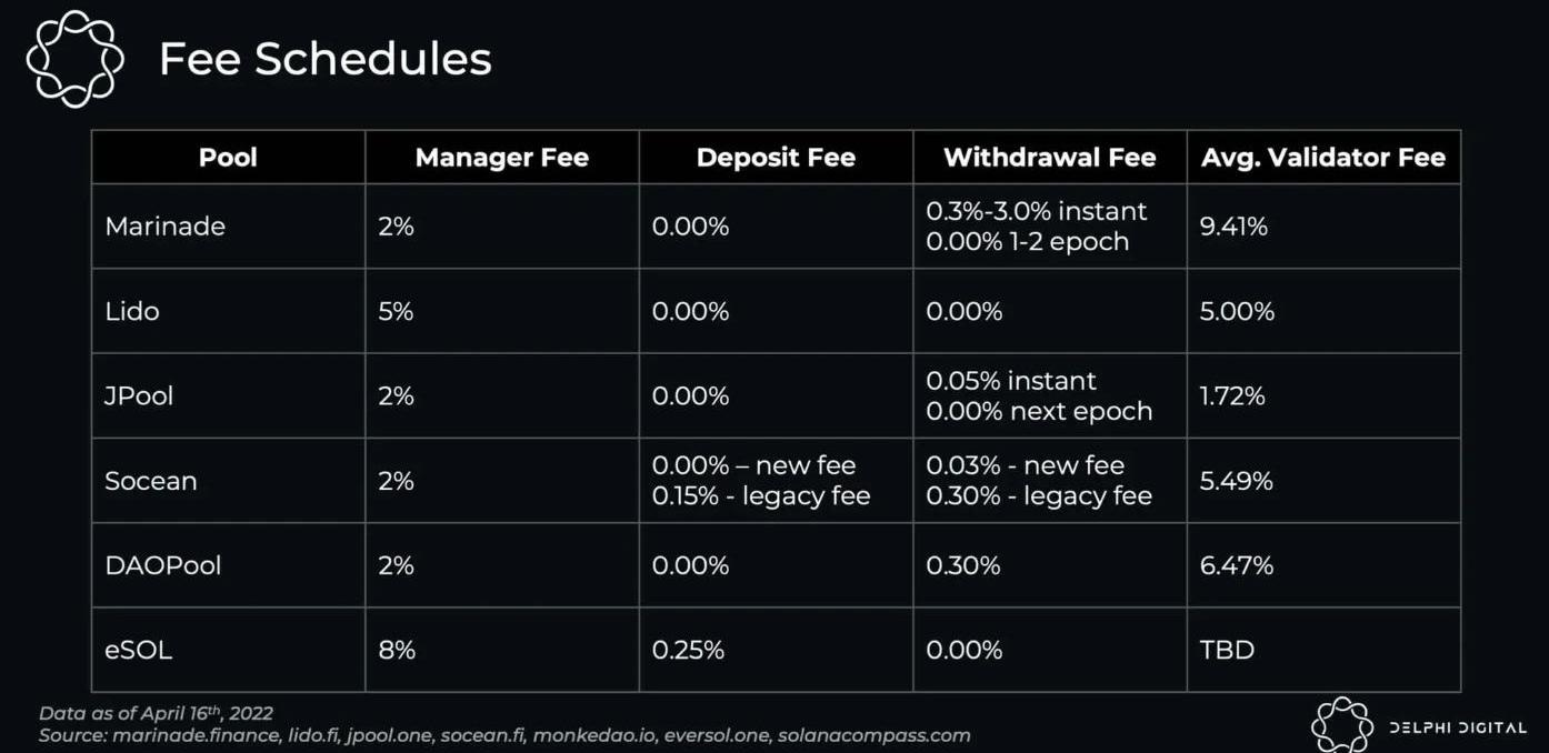 資料來源:DelphiDigital以下是Solana的液態質押的費用明細。