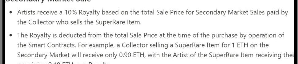 SuperRareSuperRare對藝術家有著嚴格審核的標準。藝術家要想入駐SuperRare,需向平臺提出申請,只有通過審核的原創作者才能發售NFT,且不能在互聯網上的其他地方進行代幣化。https://www.notion.so/SuperRare-Terms-of-Service-075a82773af34aab99dde323f5aa044e傭金