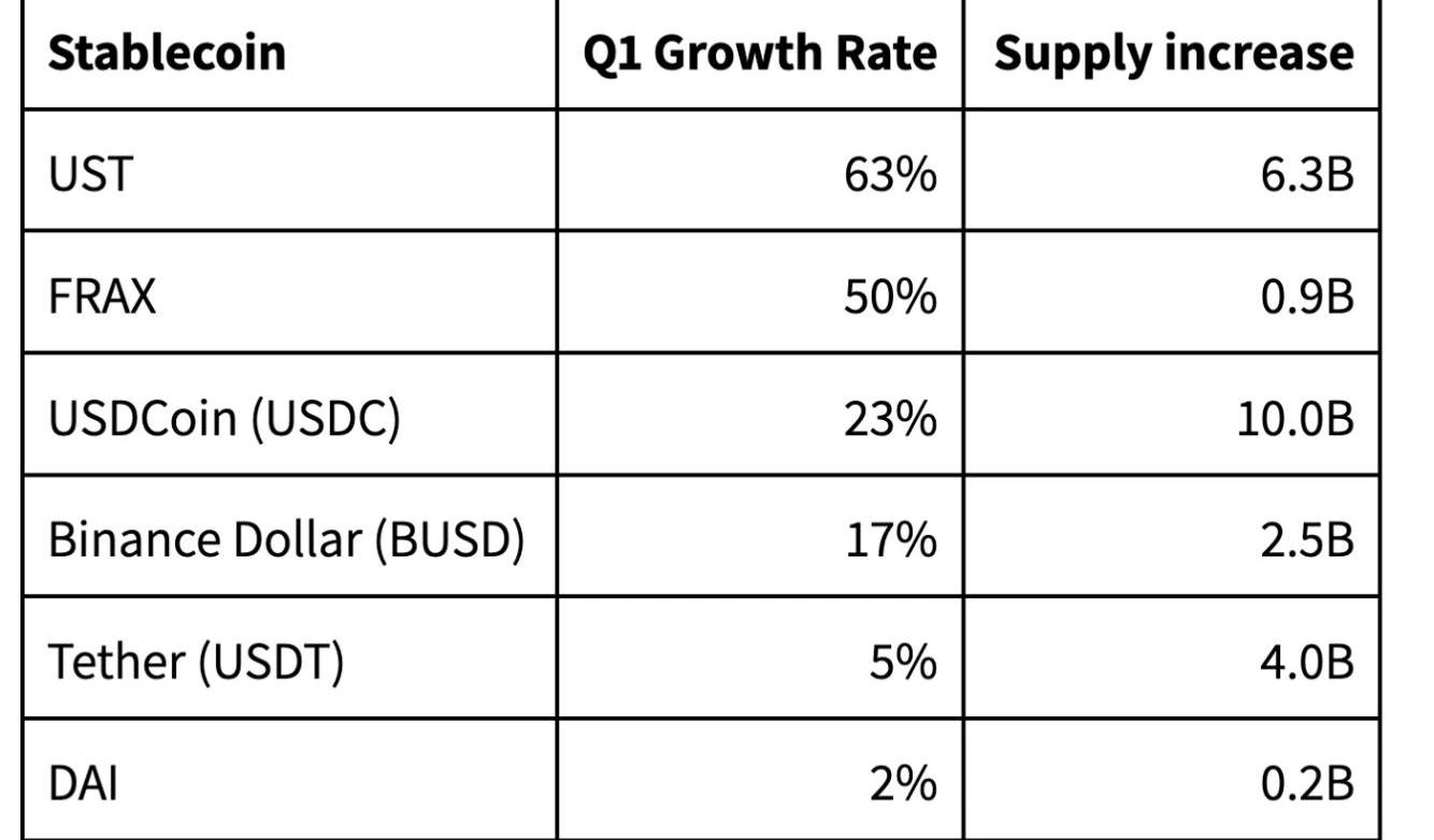 Anchor作為Terra中心的“瘤”,需要被喂養。它貪婪的胃口,也使UST成為整個行業增長最快的穩定幣。
