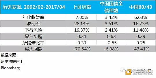 從投資收益的角度來看,如果投資人能夠堅持一個超過5年期的投資計劃,與持有單個資產相比,可以說是在沒有過多地犧牲年化收益率的前提下,降低了心理上的投資負擔:單純投資于上證指數,如果連續持有超過5年,其平均年化收益率為6.7%左右,而簡單的60/40的資產組合,也有6.7%左右。