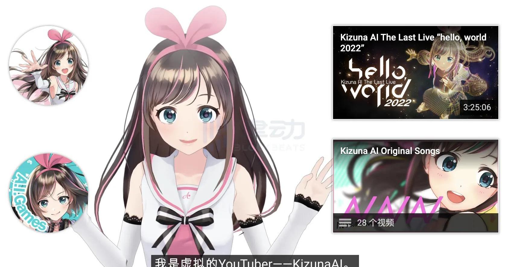 虛擬人有多種類型,復雜性也各不相同。VTubers據Virtualhumans介紹,VTubers通常是人類使用一系列面向消費者的動作捕捉技術和角色創建軟件創造的虛擬人物,在流行的視頻平臺上直播他們生活,如YouTube、Twitch、Niconico和Bilibili等流媒體上傳播。最早,VTubers于2010年代中期起源于日本,到2020年代初期逐漸發展成為一種全球現象。通過使用實時動作捕捉技術來操縱虛擬化身,VTubers在一系列平臺發布視頻,以吸引被他們創建的角色所吸引的粉絲群。追溯到2010年2月,當時視覺小說制造商Nitroplus開始將內容上傳到他們的YouTube頻道,并使用他們的吉祥物「SuperSonico」討論了即將發布的版本。然而,在2016年底這個現象來到了一個臨界點:「KizunaAI」在YouTube開始了首次亮相。