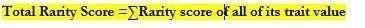 一個特定NFT的總稀有度得分是特定NFT中所有特征的稀有度分數的總和。