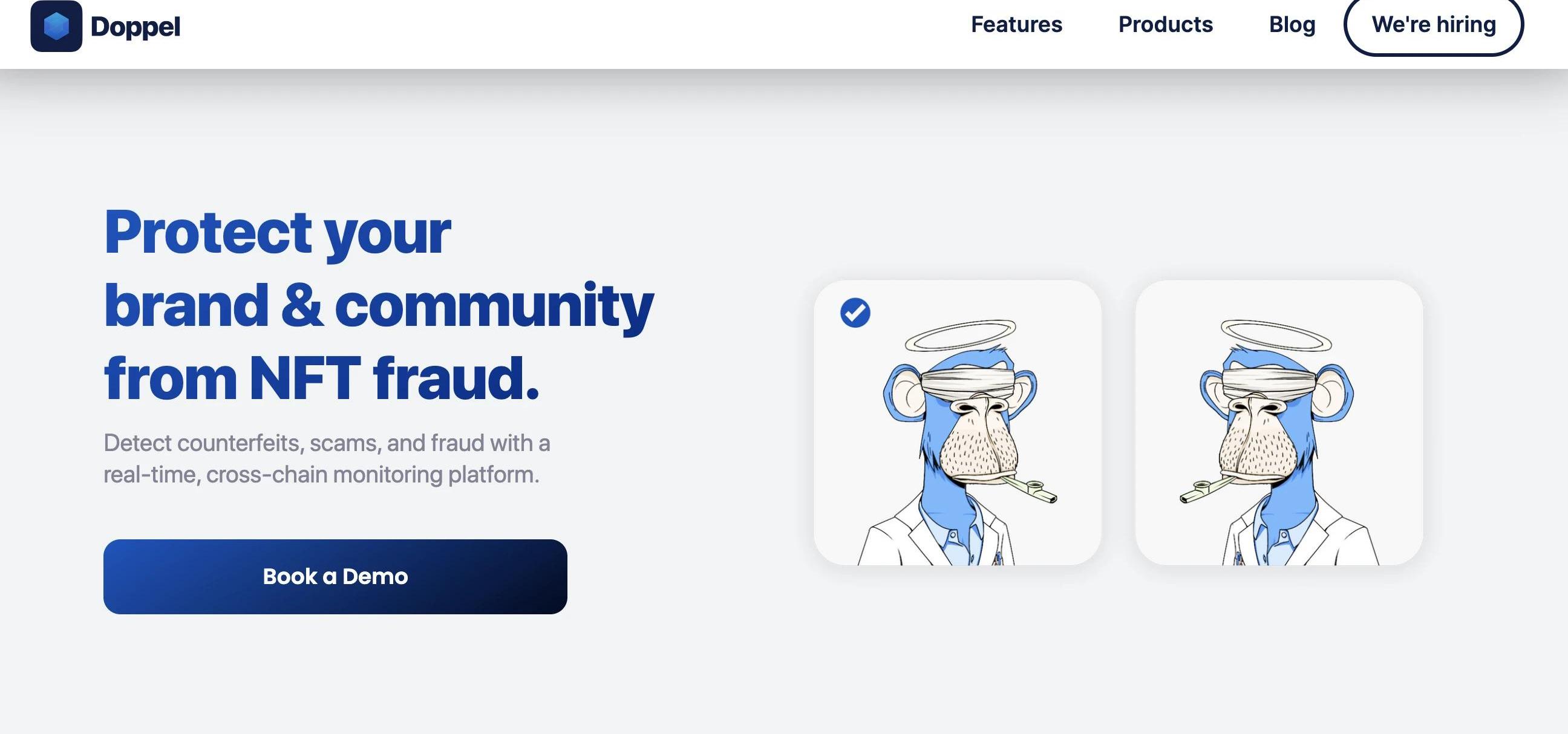 Doppel官網:https://www.doppel.com/Doppel是由前Uber工程師KevinTian和RahulMadduluri于今年2月創立的初創公司,它通過對以太坊、Solana、Polygon、Flow等在內的區塊鏈的NFT數據進行索引,并使用包含關鍵字和元數據的模型來監控NFT仿品。Doppel的系統可以在一分鐘內檢測到欺詐行為,目前,他們已經在索引的1億個NFT中,發現有3700萬個可能存在欺詐的項目。Doppel目前已經與DapperLabs、YugaLabs、MagicEden合作,并于近期獲得了由加密貨幣交易所FTX的風險投資部門牽頭的500萬美元種子資金,其他投資機構包括PolygonStudios、SolanaVentures、OpenSeaVentures、DapperLabs、SVAngel、SouthParkCommons、ScriptCapital、SpartanGroup、Paxos、6529Capital、QuietCapital和AlphaLabCapital等。在開發方面,Doppel將聚焦建立IP盜竊檢測工具和擴展欺詐檢測能力,以識別市場操縱、惡意智能合約等行為。此外,除了內部數據基礎設施外,Doppel還將使用尖端的計算機視覺和AI模型在1分鐘內生成全面而準確的NFT偽造品報告。