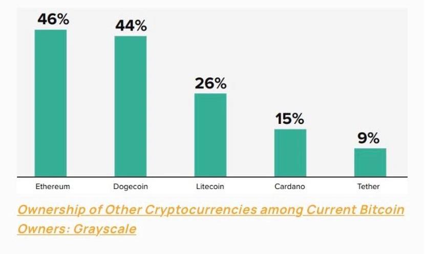 灰度公布的數據顯示,在2011年的時候,所有比特幣的持有者只持有比特幣,而目前比特幣的持有者中只有13%的人僅持有比特幣。未來這一數值可能會降至1%以下,因為比特幣社區的參與者們一般都持有開放包容的態度。