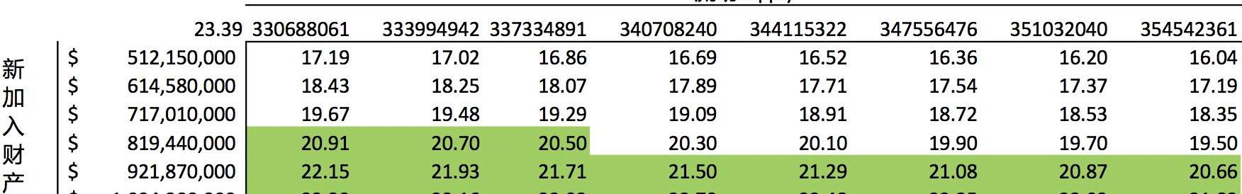 在過去的一年當中,RUNE的價格指數平均為6x,如果我們取保守估計,價格將為$23.39,超過過去的ATH。下圖為Sensitivity測試,綠色標注為高于ATH的價格預測。