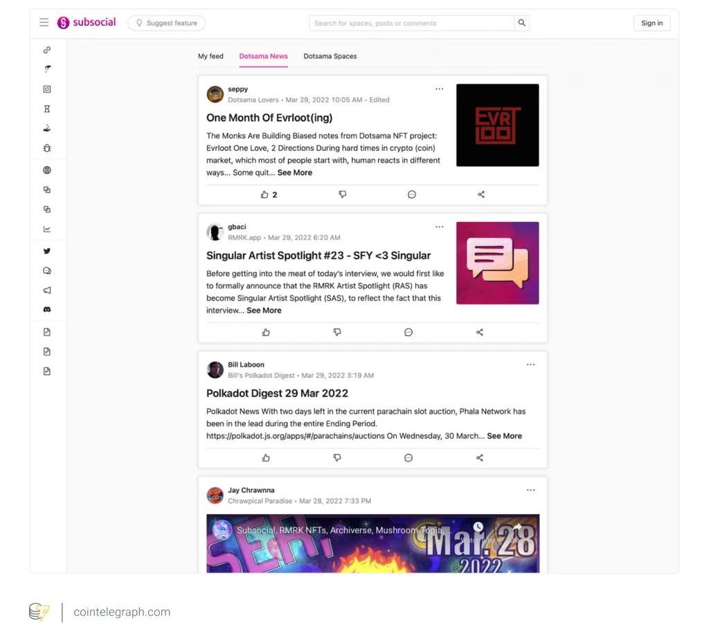 Entre運行在社交區塊鏈上,而Aave支持的LensProtocol部署在Polygon上。StaniKulechov表示,Lens“實際上是一個去中心化的社交圖譜”。根據Kulechov的說法,當該協議上的應用程序的用戶創建個人資料(profile)時,該資料將被代幣化為一個NFT。每當有人關注某個用戶時,他們就在鏈上創建了一種關系(relationship),這種關系無法被平臺或者任何其他人打破,因為這些關系也會被代幣化為NFTs,可以在像MetaMask這樣的數字錢包或者在OpenSea的web上查看。Subsocial并不將自己視為一個去中心化社交網絡,而是一個構建社交網絡的平臺。它允許用戶創建個人資料(profile)和自定義個人“空間”(Space),并聲稱有著無服務器的公共時間軸、角色和權限、用戶治理、審核、DAO的空間和一個金庫。該平臺在Polkadot和Kusama區塊鏈上運行,它最近創建了自己的第一款應用,這是一個去中心化的Reddit&Medium混合應用。據YB稱,Subsocial計劃在未來移除這些個人資料(profile)。為了節省空間,所有上傳到Subsocial的的內容(圖片、視頻和文本)都托管在IPFS系統上,并將IPFS內容標識符上傳到區塊鏈。每個IPFS節點由一個或多個人托管,這些節點運營者控制著在其服務器上托管的內容。
